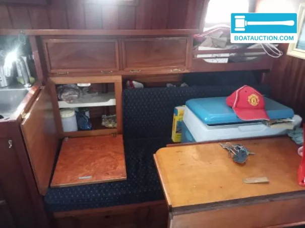 The boat is powered by a Saab inboard diesel engine with a power of 10 hp. The engine is electrically started and has one cylinder. The engine's year of manufacture is the same as that of the ship: 1977. Fuel consumption is around 1.5 liters per hour, and the diesel tank has a capacity of 45 liters. The cruising speed is approximately 10 km/h. The electrical system consists of an alternator and a solar panel, with a 12v and 220v system. There is one battery on board with a capacity of 100 Ah.