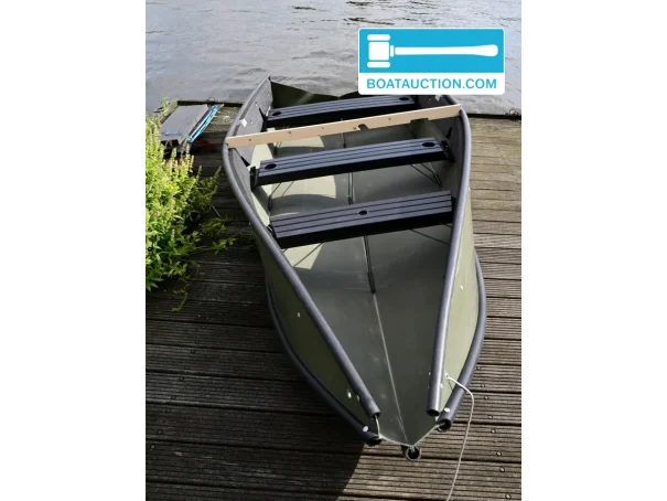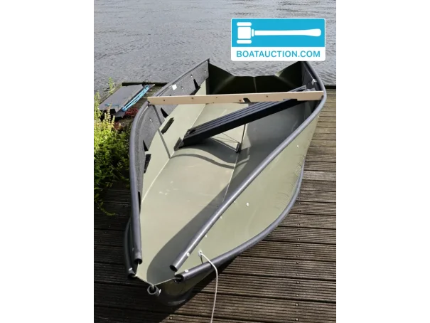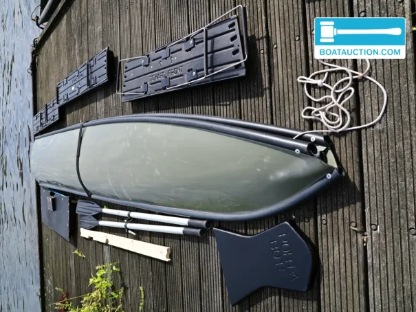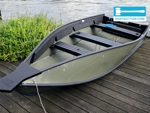 This Porta-Bote 12ft folding boat from 2006 offers a practical and space-saving solution for enthusiasts of boating on inland waters. Thanks to its unique folding system, this boat is easy to transport and store, making it particularly suitable for recreational use on lakes, ponds, and rivers. The boat is offered including a Suzuki DF4 outboard motor from 2015, a motor stand with wheels, a 5-liter jerrycan, and detachable aluminum oars.