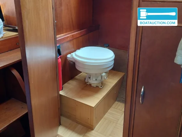 For extra maneuverability, there is an electric bow thruster. The electrical installation consists of three batteries with a total capacity of 2x200 Ah, a battery charger, alternator, inverter, voltmeter, shore power connection, and a solar panel. The onboard voltage is 12V, 24V, and 220V. A Bosch generator is also present.