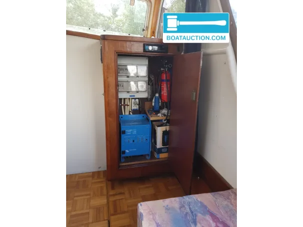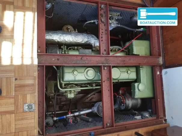 The vlet is powered by an inboard DAF575 diesel engine with a power output of 105 hp. This six-cylinder engine is electrically started and has approximately 5,250 operating hours. The engine is operational, and the fuel consumption is around 3 liters per hour. The diesel tank has a capacity of 300 liters. The boat is equipped with various measuring instruments, including a fuel tank gauge, oil pressure gauge, temperature gauge, and tachometer.