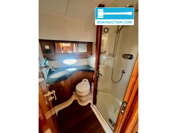 The Sunseeker Manhattan 56 is a flybridge motor yacht built in 2002 by the renowned shipyard Sunseeker. This model is known for its spacious layout, distinctive lines, and functional sailing characteristics. With a length of 17.90 meters and a width of 4.59 meters, the ship offers ample living space on board for extended stays on the water. The hull is made of composite material, contributing to a relatively low weight and a good balance between strength and maintenance needs.