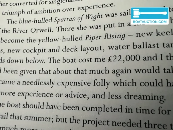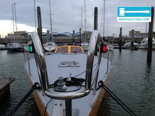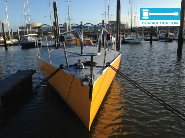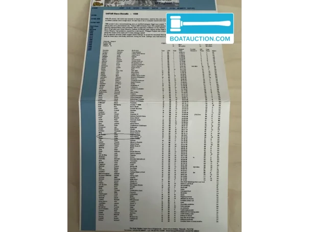 The boat has a unique background. Nigel Rowe, the previous owner, participated in the 1988 BOC Challenge with this ship. For this race, the ship was modified with watertight bulkheads in the front and rear of the hull, increasing buoyancy. The ship's documentation is fully available, including maintenance invoices and documents from Nigel Rowe. A sample of the hull is available for inspection, as well as photos of previous treatments. The boat has shown signs of osmosis in the past, for which a professional treatment was carried out.