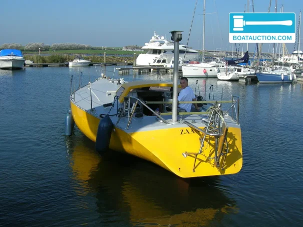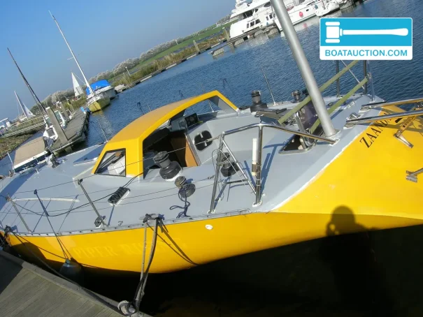 With a length of 12 meters, a width of 4.5 meters, and a draft of 2.7 meters, this vessel is designed for stability and seaworthiness. The hull is round-bilged and made of polyester, which contributes to the strength and durability of the ship. The clearance height is 20 meters. Inside, there is a standing height of 1.75 meters, providing sufficient freedom of movement for most occupants.
