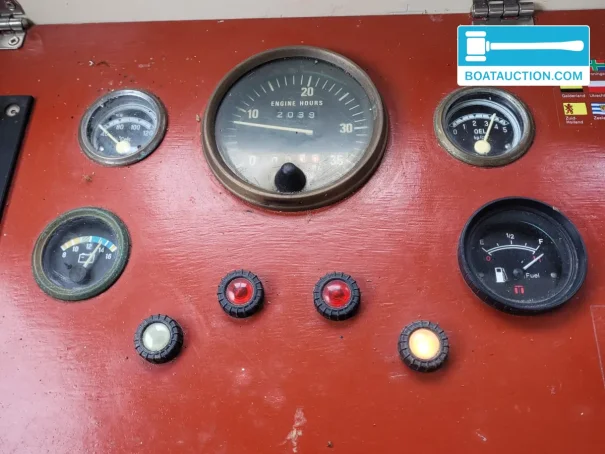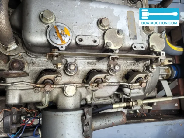 The sloop is equipped with a Yanmar 3QM30 inboard diesel engine with a power of 33 hp. This three-cylinder engine is electrically started and dates from the year 2000. The engine has approximately 300 operating hours and is operational. The cruising speed is around 10 kilometers per hour, with a maximum speed of about 13 kilometers per hour. The fuel tank has a capacity of 100 liters. Onboard are various measuring instruments, including a fuel tank gauge, oil pressure gauge, temperature gauge, and tachometer.