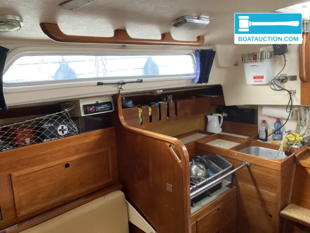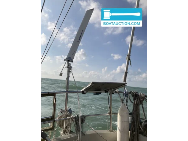 For safety, a liferaft is available, although it has not been recently inspected. The cockpit is self-draining, and there is a manual bilge pump on board. A notable extra is the Clipper wind vane steering system, which the owner claims functions effectively during ocean crossings. This addition makes the vessel suitable for longer trips without constant manual steering.