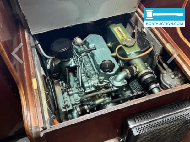 The Contest 33 is equipped with a Mitsubishi S3L inboard diesel engine from 2007. This engine has a power of 28 hp, distributed over three cylinders, and has approximately 500 operating hours. The engine starts electrically and is suitable for cruising speeds of about 10 km/h and a maximum speed of approximately 14 km/h. The fuel tank has a capacity of 100 liters.