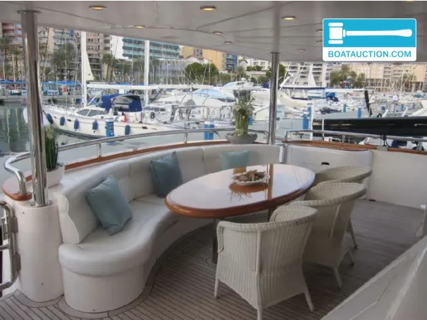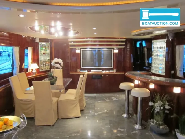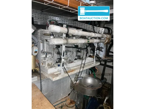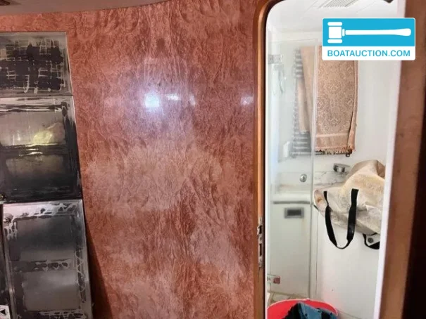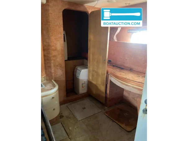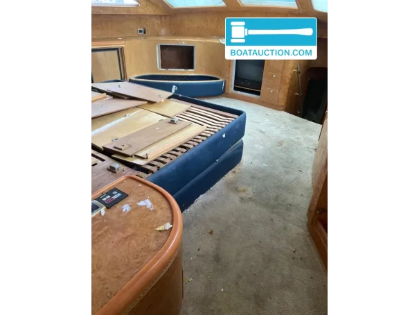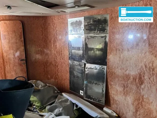 The vessel is currently in a state that requires restoration. There is damage to the starboard side of the flybridge. In addition to the structural damage to the hull, the engines, generators, and electrical systems need to be inspected and repaired. The interior finish is due for renewal, offering opportunities for a complete redesign according to personal preferences. The boat is on the hard and can be fully inspected during the viewing day. Â