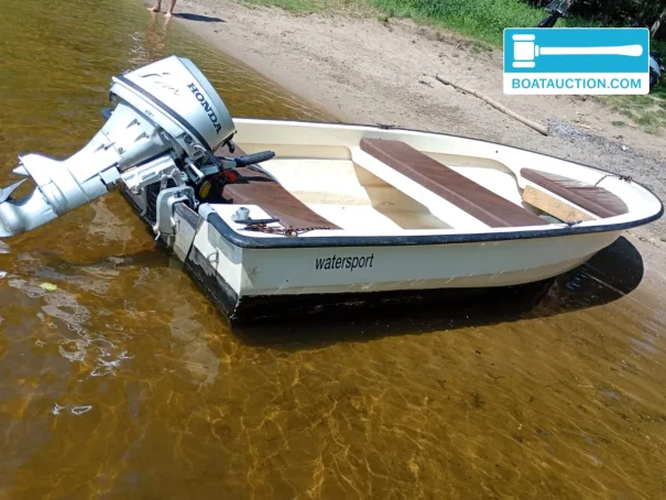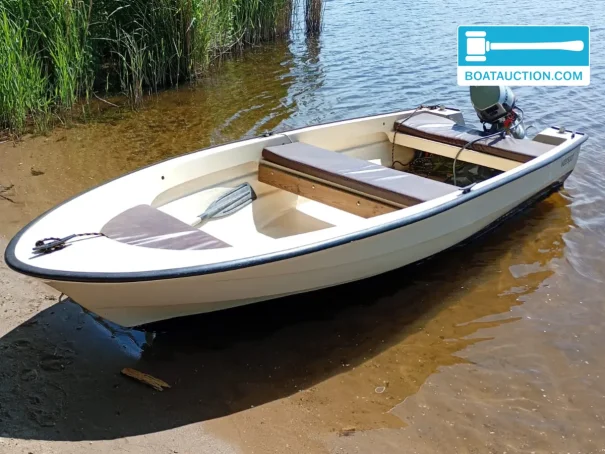 The Verano 410 from 2002 is a polyester boat with a simple, functional design. The boat is equipped with a Honda 8 HP four-stroke outboard motor and is suitable for use on inland waters. Thanks to the lightweight construction, stable V-bottom, and compact dimensions, this model is suitable for various recreational purposes. The boat is equipped with a cushion set and is reportedly free of defects or osmosis. The combination of a low-maintenance hull and a working engine makes the Verano 410 an option for those looking for a compact boat for day trips or fishing activities.