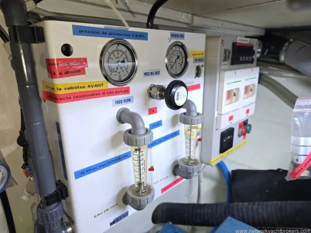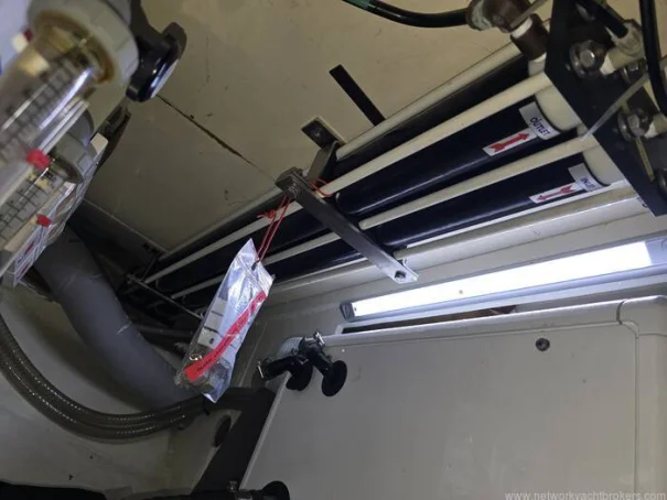Two double cabins — starboard cabin with access to generator and watermaker in large cupboard space