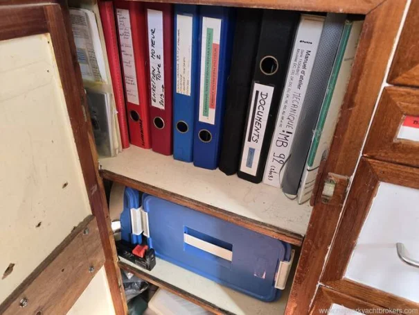 Starboard Side - navigation station with comprehensive storage for manuals and service records