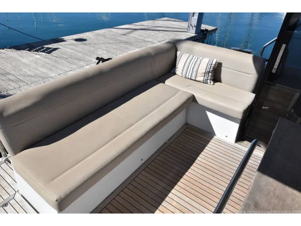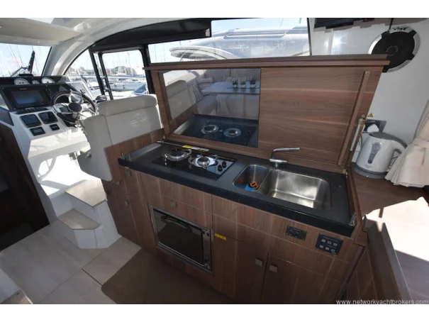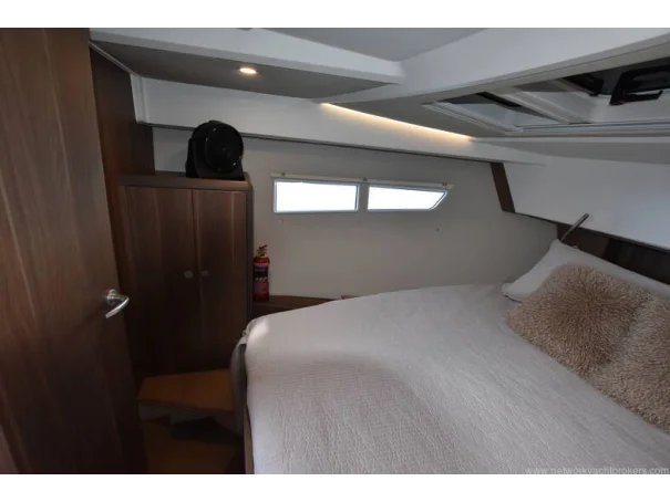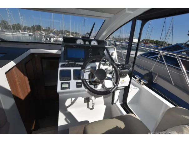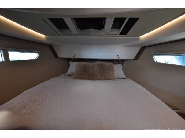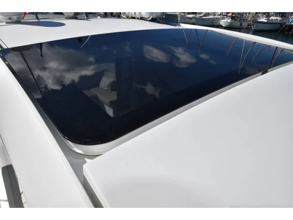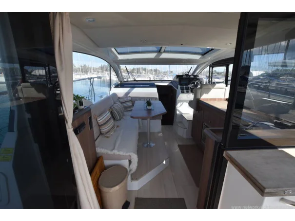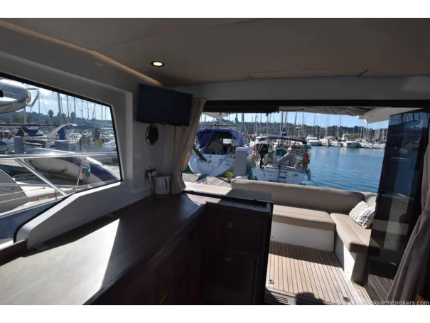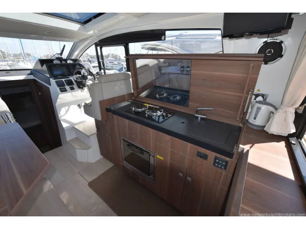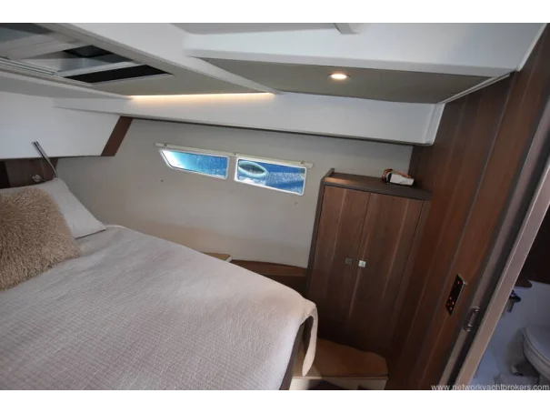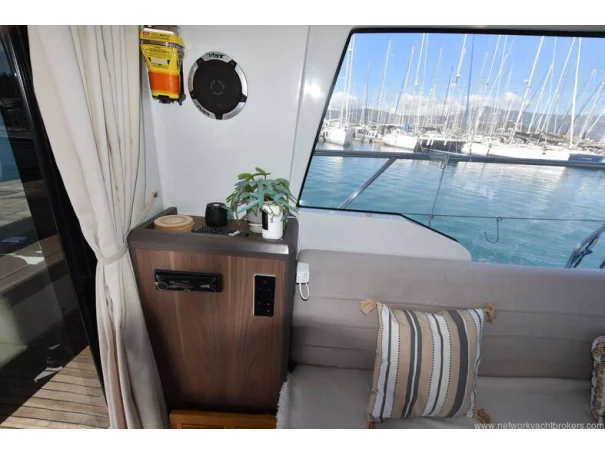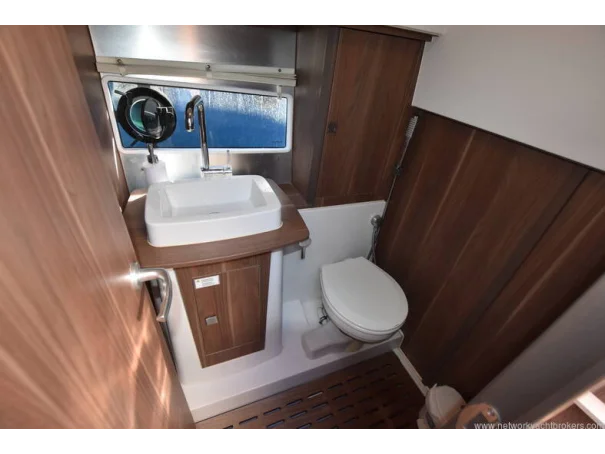 The saloon and galley areas are bright and sociable, enhanced by the electric sunroof and side entry door at the helm, offering excellent ventilation and deck access.