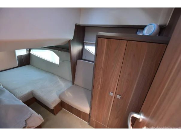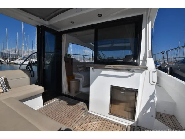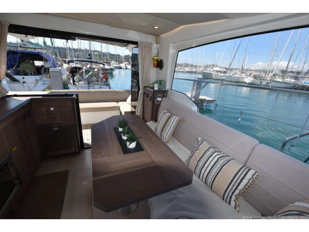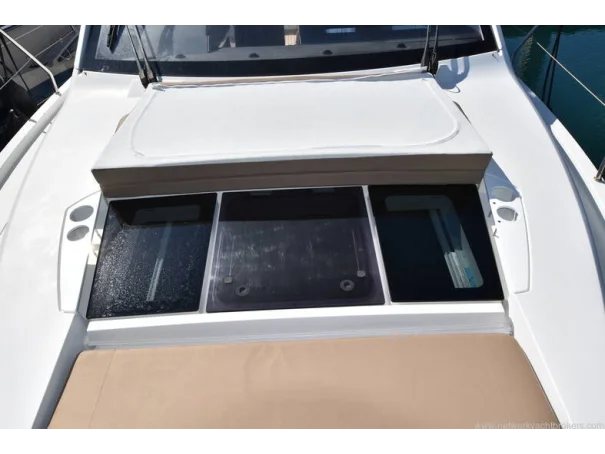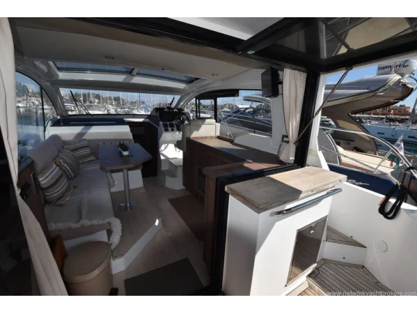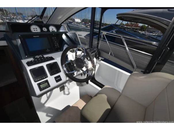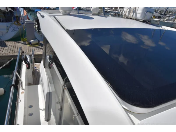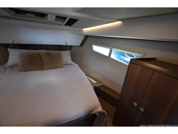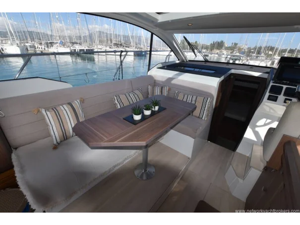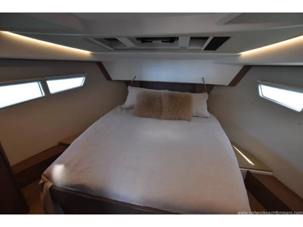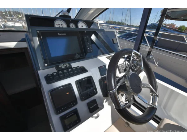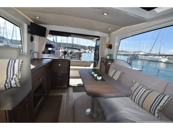 The saloon and galley areas are bright and sociable, enhanced by the electric sunroof and side entry door at the helm, offering excellent ventilation and deck access.
