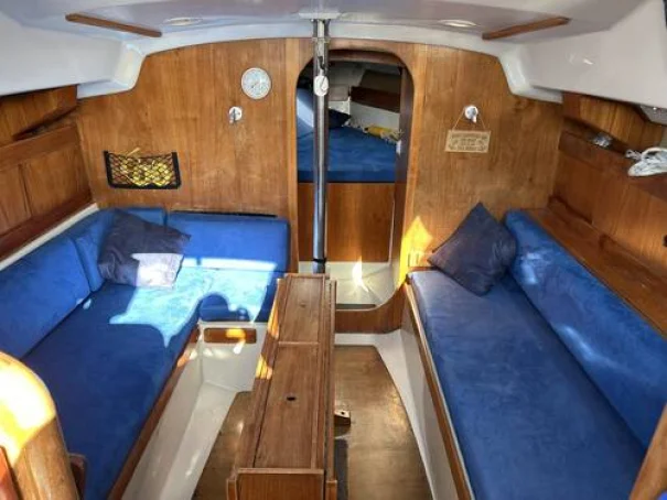 Sleeps 5 in two cabins Double V berth in the forward cabin Single settee berths in the saloon Single aft quarter berth Amidships heads Shaped galley aft of the saloon to starboard with a single stainless steel sink, manual water, toolboxes & a Nelson Spinflo 2 burner gas hob, oven & grill (NEW 2024) Inventory : Navigation Aids: In The Cockpit; Garmin GNX wind (NEW 2025) Raymarine ST60 speed Raymarine ST60 depth Garmin steering compass