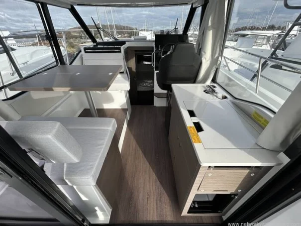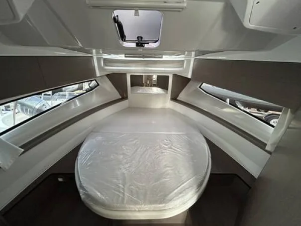 This new version integrates an elongated line, inspired by larger models of the new generation. Contemporary windows in the hull and the coachroof, with its distinctive design, integrate seamlessly into a powerful, sporty silhouette. The new hull enables planing from 20 knots, ensuring comfort and manoeuvrability.