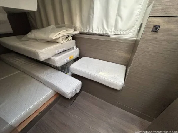 The second cabin is situated on the port side, has a generous sleeping area, good natural light from port hole as well as from the sky light and also incorporates a seat. Under the berth is additional storage as well as a hanging cupboard.