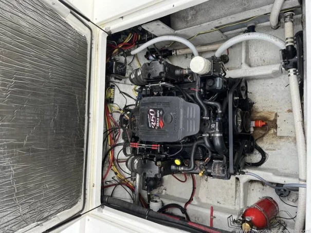 Engine: Mercruiser 350 MPI Power: 300 hp Year: 2006 Drive: Stern drive Fuel Type: Petrol Cooling: Sea water cooled Bow Thruster: Yes Engine Hours: Unknown (approx. 20 hours since last service) Last Serviced: December 2023 (including leg)