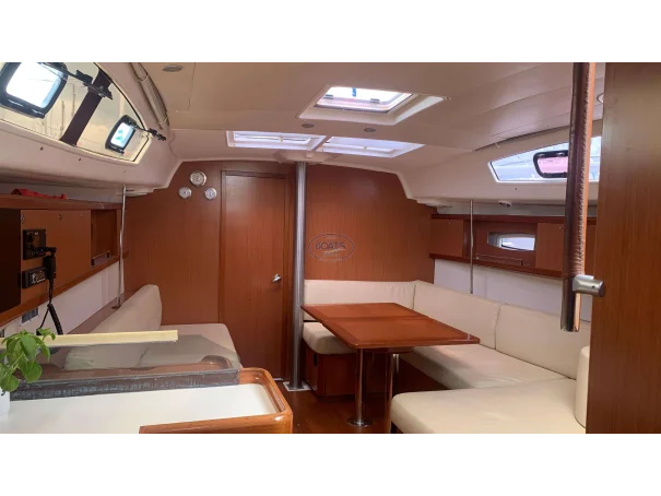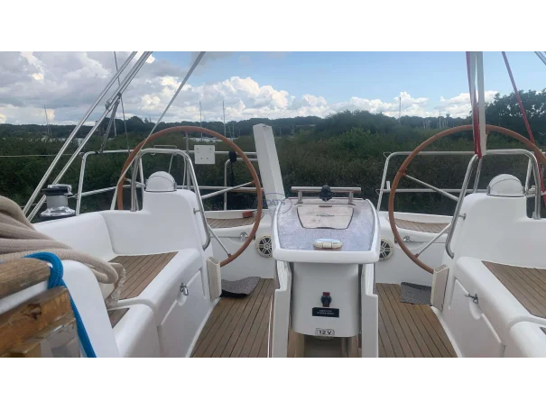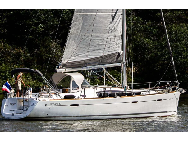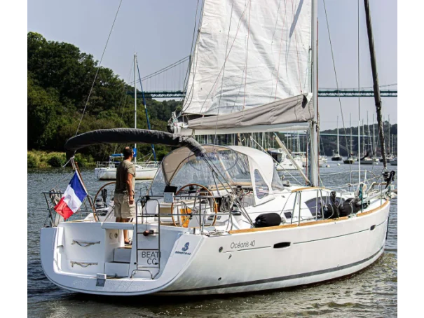 Oceanis 40 (2009), 2-cabin layout, very well equipped and ready for long-distance cruising. Draft of 1.55 m (shoal keel, ideal for Brittany and coastal sailing). Standing rigging and sails (mainsail and furling genoa) replaced in 2022. New B&G Vulcan 9 plotter and AIS VHF, dual refrigerators, 1500W inverter. Bow thruster, recent sprayhood and bimini, asymmetrical spinnaker, Coppercoat antifouling. Comfortable interior with a spacious saloon and separate shower. Full inventory, surveyed in December 2024, impeccable condition.