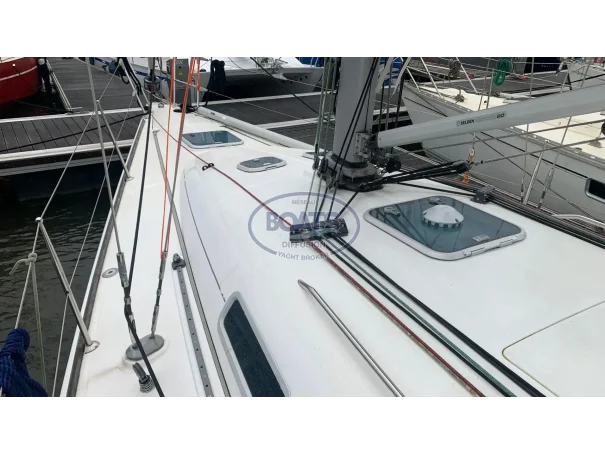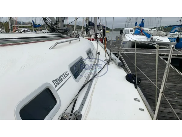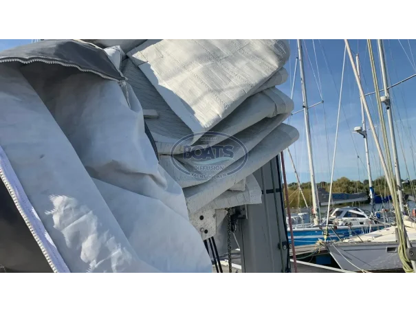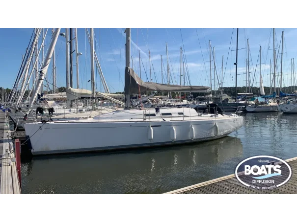 First 40.7 (1999) designed by Bruce Farr: cruising-performance, 3 cabins/8 berths. Volvo 2040 ~2,000 hours, saildrive joint 2021. Electronics refurbished 2022 (Garmin GPSMAP 923, central unit, sensors, VHF ASN, AIS B). LiFePO4 service battery bank 2022. Harken furler, stay 2022 and new genoa 2025. Battened mainsail 2017, storm jib/inter TBE, spinnaker + asymmetric 2017. Cockpit with 6 winches, ROD standing rigging 2010: replacement recommended (quote available). Ideal for racing/fast cruising. Invoice file, visit upon request.