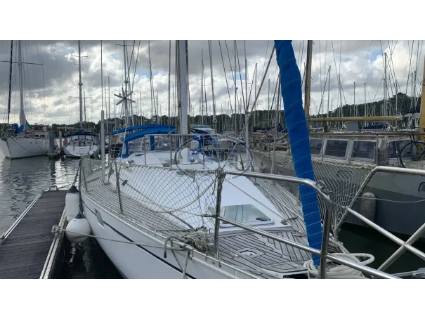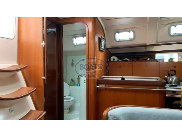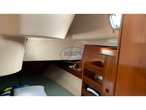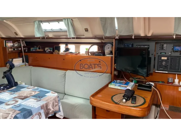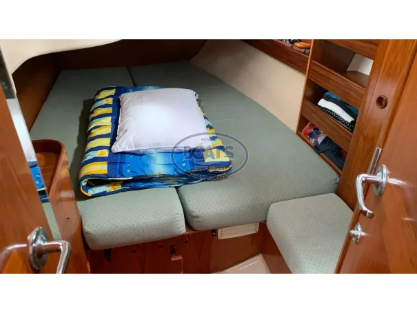 3 cabins - 2 bathrooms - Owner's version with its large forward cabin. Equipped for offshore sailing - Mainsail on roller, Genoa on roller, Staysail, asymmetrical spinnaker with pole - Sails from 2005. Rigging changed in 2015. Original woodwork and upholstery in excellent condition. A technical storage space is present between the anchor locker and the forward cabin.