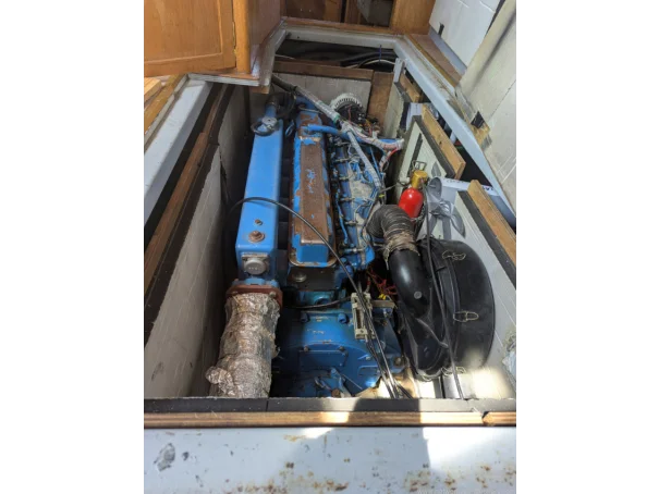 This Altena 38 has a single New Holland (NHD675L), a 6-cylinder 150HP diesel engine with a shaft drive to a fixed 4-blade prop. The engine is keel cooled. There is a rope cutter fitted to the shaft. The cutlass bearing was last changed in 2013. The engine has completed a total of 2411 hours as of 7th October 2025. The engine was last serviced in May 2023. There is a total of 700 litres of fuel stored across three steel fuel tanks. This trawler motor yacht has a cruising speed of 6 knots and a maximum of 7 knots. To make handling easy, this boat is fitted with a bow thruster.