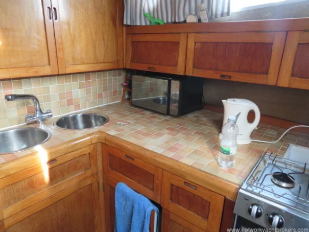 Galley: Well-equipped with storage and facilities for extended cruising