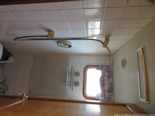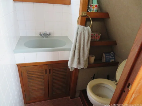 Heads/Shower: Marine toilet with holding tank, washbasin, and shower with pressurised hot and cold water