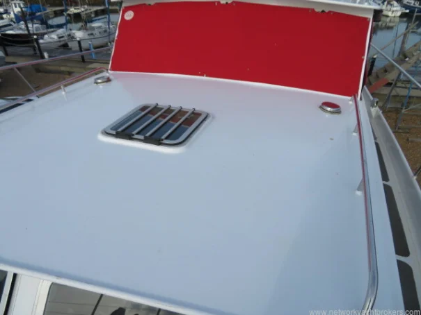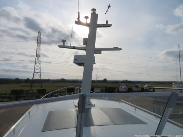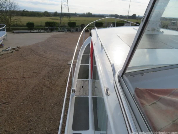 Built in 1992 this Altena 38 has a white steel hull and decks with non-slip surfaces. It has a steel deck in the aft cockpit area. Wheel steering. Steel toe rails. Stainless steel stanchions, pulpit. Glass windscreen with black bonded surround. Walk through the transom gates to the bathing ladder to the bathing platform. Teak battens to the bathing platform. Self-draining cockpit. Currently out of the water, October 2025. Last antifouled and hull polished, and anodes changed in April 2025. The owner is selling as looking for a newer, smaller motor yacht.