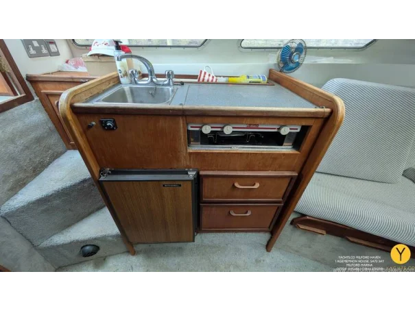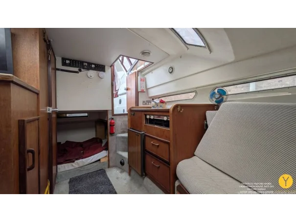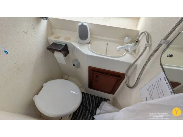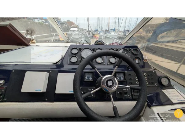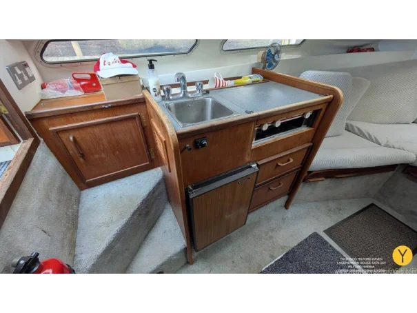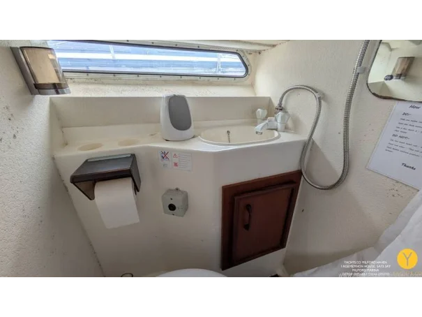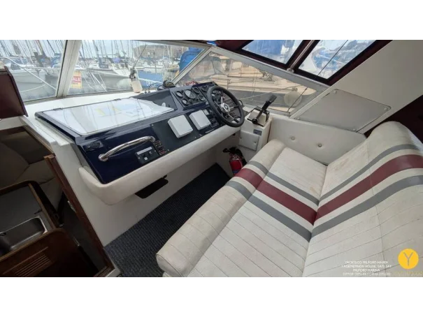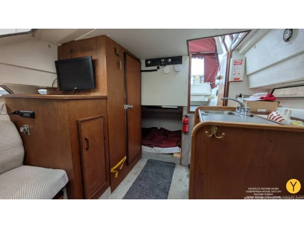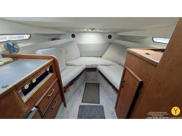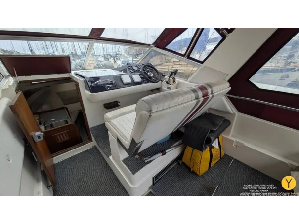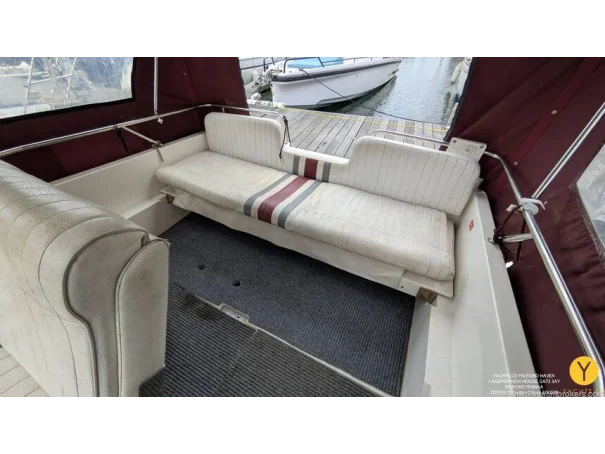 Lay afloat with Yachts.Co Milford Marina, SA73 3AY. Call 01646 278270 or WhatsApp 07709 095683 for further information and viewings. Accommodation : Large rear cockpit, huge bench seating and double helm seat covered by an all over cover. Access to cabin: