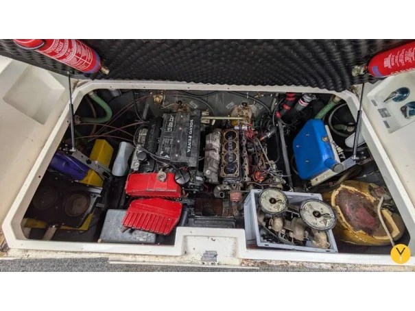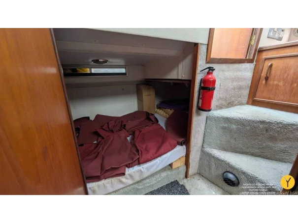 Double berth, with storage. Inventory : 2 x Volvo Penta AQ151C inboard 4 cylinder petrol - 147hp each 2 x Volvo Penta 280 SP Sterndrives 3 x Batteries 2 x Bilge Pumps NASA Clipper display - Depth & Log Overall cover & misc covers Fenders and Warps Electric anchor windlass Anchor and Chain Fender baskets Stern ladder Diesel blown air heating Hot water calarifier Mechanical : 2 x Volvo Penta AQ151C inboard 4 cylinder petrol - 147hp each 2 x Volvo Penta 280 SP Sterndrives