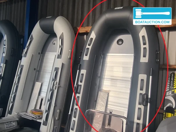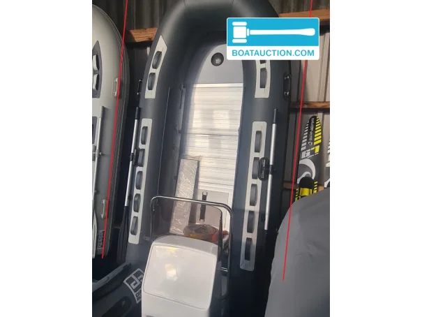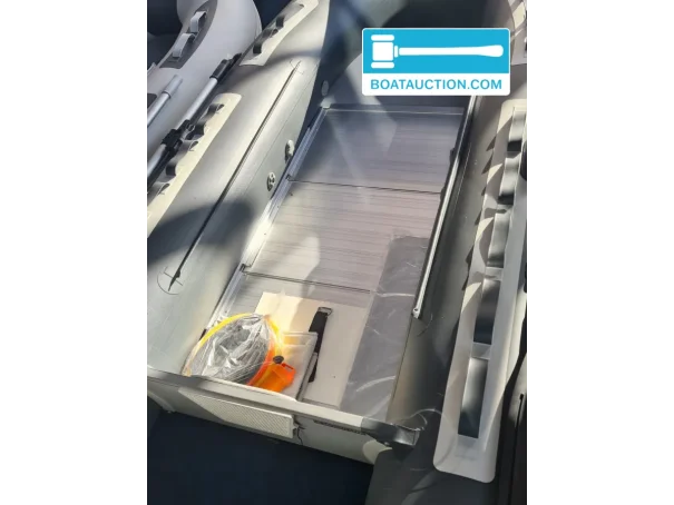 For propulsion, an outboard motor up to 10 hp can be used, with a short shaft length. The boat is equipped with Leafield C7 and overpressure valves in each air chamber, contributing to safety and stability. The bottom consists of an aluminum special edition construction, and the dark gray tube gives the boat a modern look.