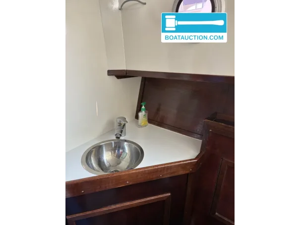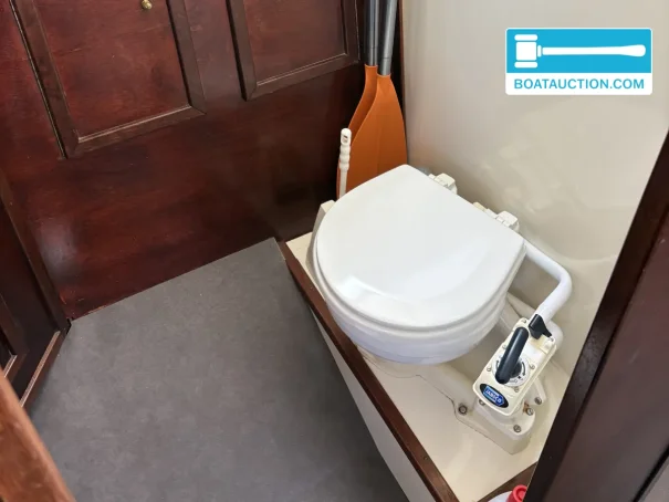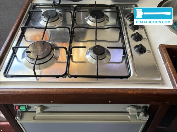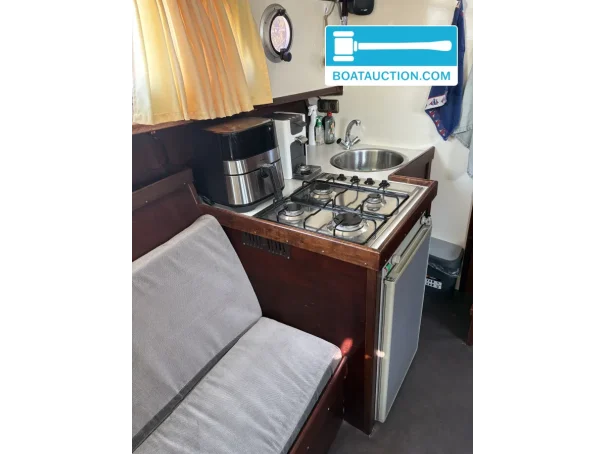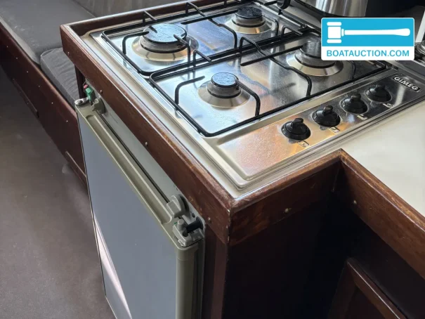The interior is arranged with a fixed berth for 2 people and additional sleeping places for 2 people, making the ship suitable for short vacations or weekend trips with family or friends. The accommodation is equipped with a refrigerator, cooker, mattresses, and hot water. There is a manual toilet with direct discharge into open water. For comfort on cooler days, there is a hot air heating system installed.