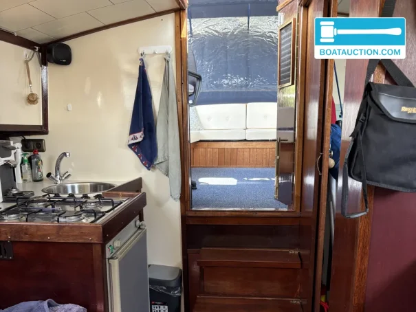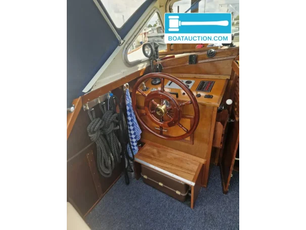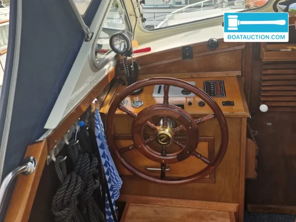 The boat is powered by a Mitsubishi S4Q-61SPH diesel engine with a power of 58 hp. This inboard engine is electrically started and has four cylinders. The engine was installed in 1998 and has an estimated running time of 2,500 hours. The fuel consumption is around 2 liters per hour, with a fuel tank of 120 liters. The cruising speed is approximately 10 km/h, with a top speed of about 13 km/h. For extra maneuverability, the boat is equipped with an electric bow thruster.