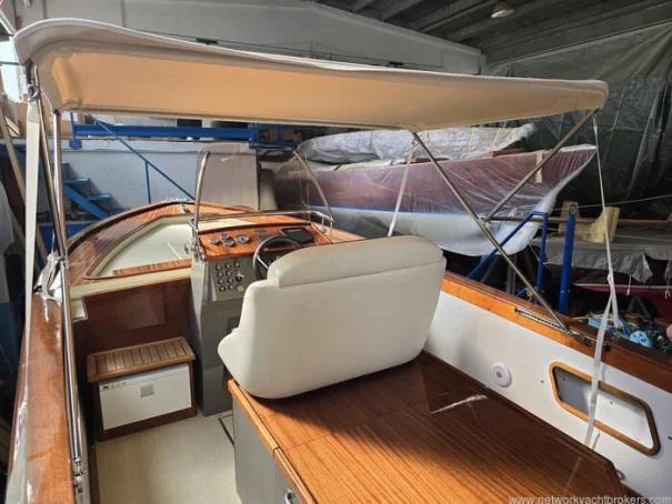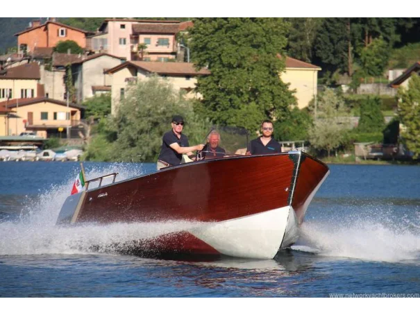 Hand-built by traditional Italian artisans, the Poldo 23 is a stunning classic day boat that embodies the elegance and soul of wooden boatbuilding. Powered by a 140hp diesel engine and crafted in richly finished mahogany, she represents a standard of workmanship that has all but disappeared in modern production.