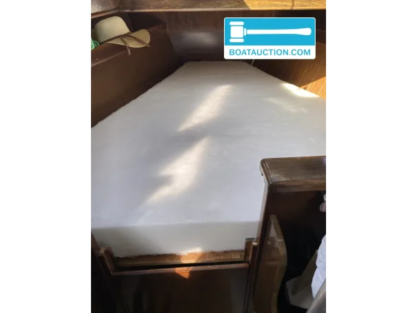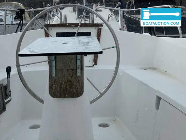 The boat has shore power connection and two batteries. The electrical installation operates on 12v. Navigation equipment is limited to a VHF radio. There are no maritime instruments present. Steering is done via a wheel in the outside cockpit, and the boat has a single rudder. An anchor with chain and line is on board.