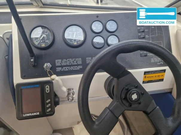 The Bayliner 1952 Capri is a model known for its sporty lines and retro appearance. The design reflects the style of the 1990s, with a low superstructure and an open cockpit that provides ample space for passengers. The cockpit is equipped with a cockpit tent, offering extra shelter in changing weather conditions.