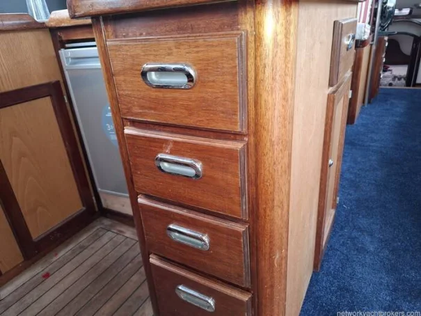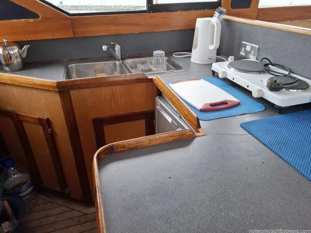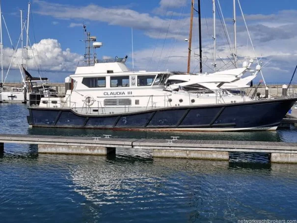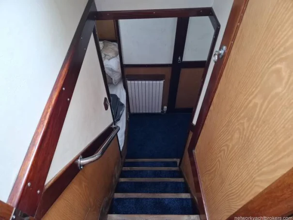 Remarkably sturdy powerful motor yacht. Built by Cara Marine and finished by David Mallet Boatbuilders and based on the Halmatic Arun class Lifeboat. Four cabins and three heads. Spacious saloon with coxswains steering position and navigation area, saloon table with seating and two bucket chairs opposite. Galley aft. Steps down to a 2 berth aft cabin with heads and water tight bulkhead door to the twin MAN 820 HP diesels. This is a serious motor vessel that will take any sea, has always been in private leisure ownership and has potential for commercial use. Lying at Malahide 15 minutes from Dublin Airport.