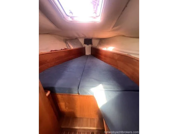 Double 'V' berth. Plenty of storage in drawers, hanging locker and under the berth. Additional shelf storage.