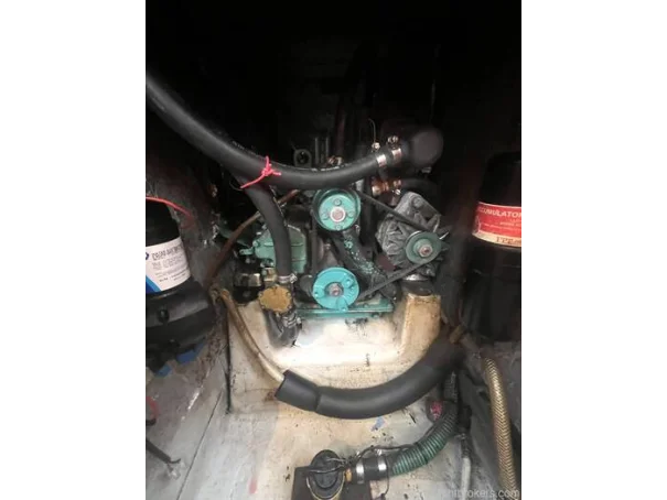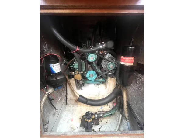 Timber work is a mix of solid wood trims and wood veneered marine ply Upholstery - 2023 Mikuni diesel fired warm air central heating. Pressurised hot and cold water system, plumbed to the galley and forward heads. SONY Radio/CD player.