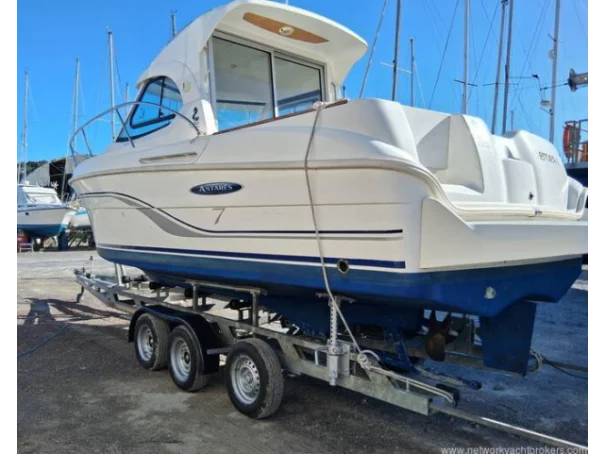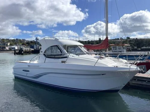 This 2007 (2008 model) Beneteau Antares 7 has been well looked after by her one owner from new and is powered by a spotless Nanni 155HP shaft driven diesel engine with only 786 engine hours. Her inventory includes a double axle braked road trailer (with an extra axle), two berths, depth sounder, boat speed, handheld VHF, marine toilet in a separate compartment, cockpit seats with cushions and more. This boat has been well minded and viewing is highly recommended.
