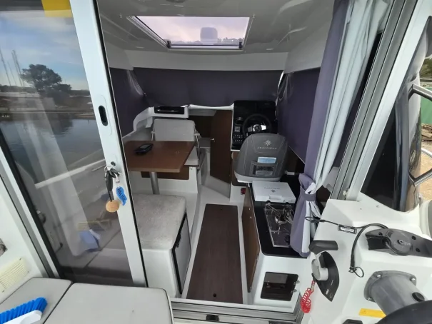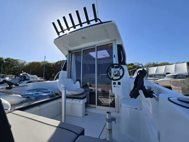 The Merry Fisher 695 is highly regarded for its seaworthiness, smart layout, and spacious cabin, ideal for both leisure cruising and serious fishing adventures. Wagtail has been enhanced for an optimal fishing experience, featuring an additional fitted steering wheel, rear helm seat, fish finder, and precision throttle controls in the cockpit.