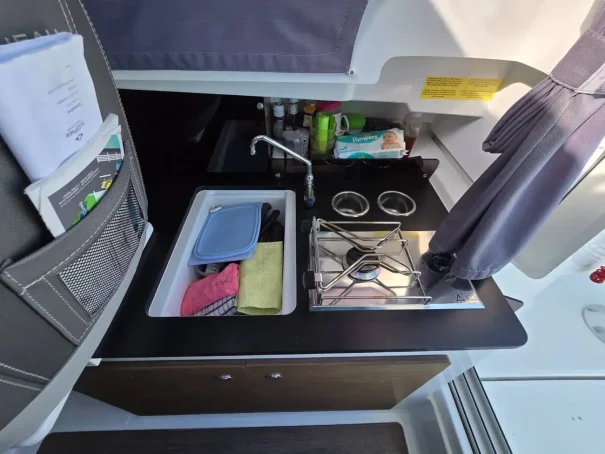 I have left a small Bosch power washer on board in the space under the rear deck as a sweetener.