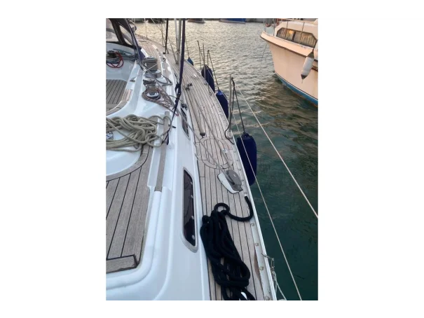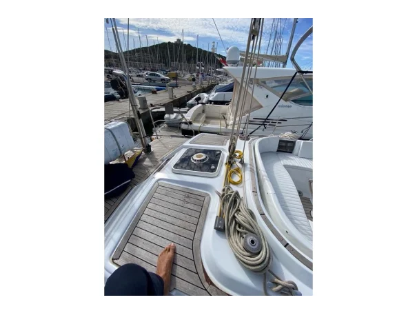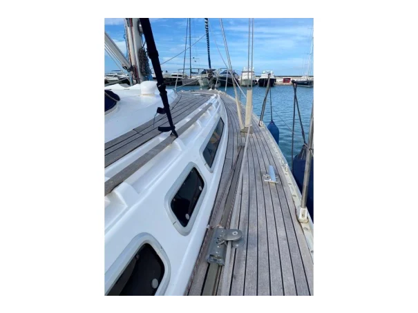 Underbody: The boat features a reliable fin keel and a strong, skeg-hung rudder. This configuration offers excellent directional stability and protects the rudder from impact, reinforcing its blue-water credentials. Its favorable Capsize Screening Formula (CSF) of less than 2.0 confirms its suitability for ocean passages (CE Category A).