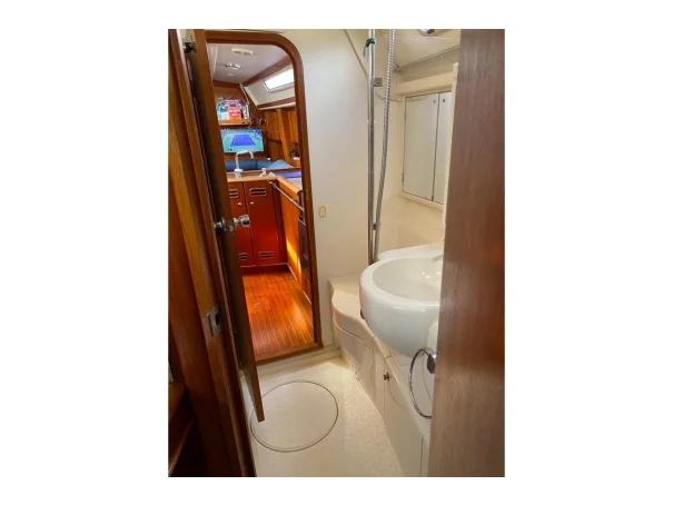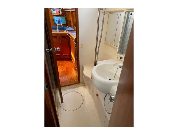 Aft Owner's Stateroom: This is the jewel of the design. Situated beneath the center cockpit, the cabin is spacious, typically featuring a large central double berth, a settee, a dressing table, and ample storage, complete with an en-suite head and separate shower.