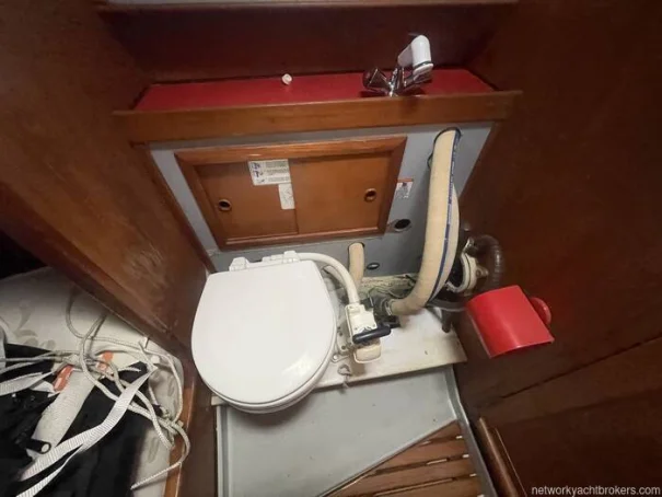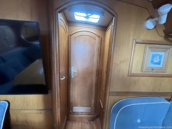 Finally, the V berth double cabin has clothes cupboards on both the port and starboard side with generous underberth storage. Port and starboard running forward shelves, starboard side holds the electric windlass controls.