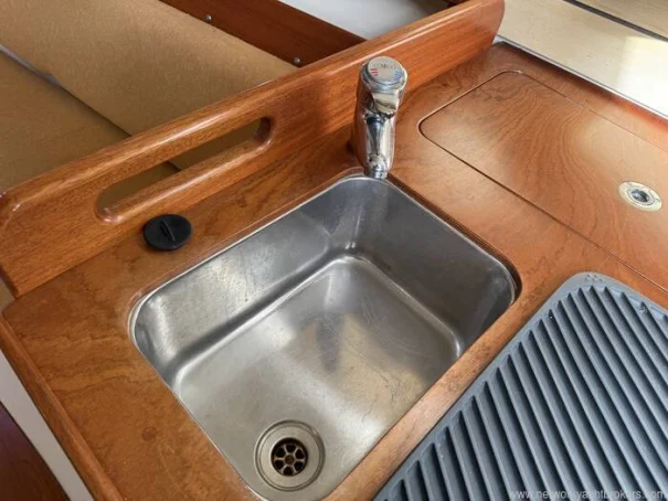 Sleeps three in 1 x double + 1 x single Folding berth in forepeak