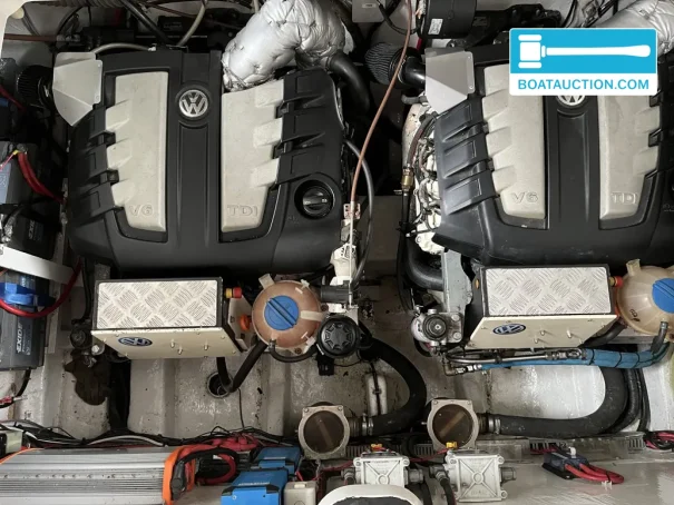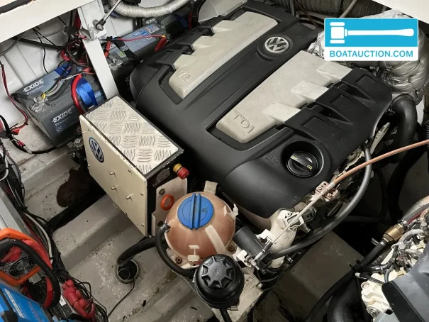 The twin inboard diesel engines from Volkswagen provide powerful performance and smooth acceleration. With a combined power of 448 hp, the Fairline Targa 29 is suitable for both leisurely trips and more sporty sailing on larger waters. The boat has previously been used at sea, including trips on the Oosterschelde, which attests to its capabilities on open water. The V-hull contributes to a stable and comfortable ride, even at higher speeds or waves.