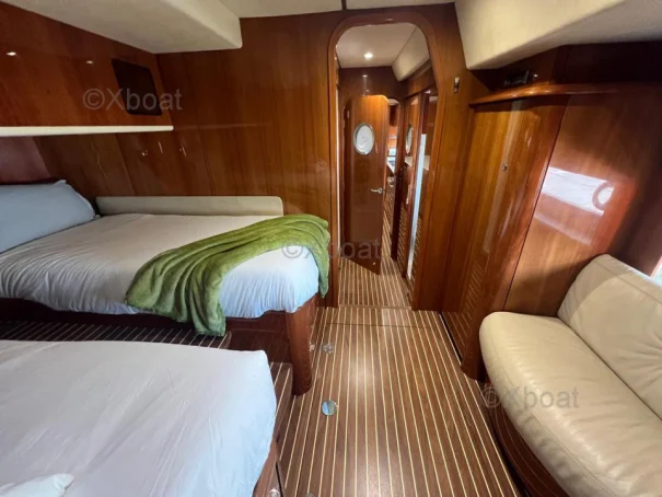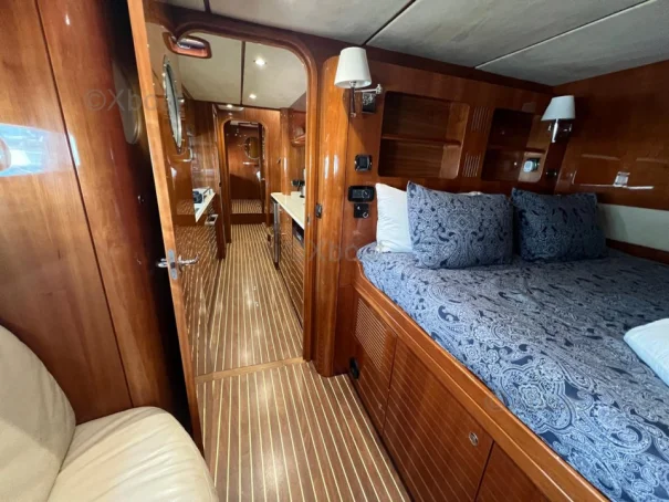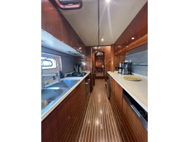 The owner's cabin is forward, with the large bed on the bow, with incredible volumes, with a desk area and dressing in the corridor. 2 other double cabins are located aft, and the 3rd one on the starboard bow accessible with the bow for the crew. The fully equipped galley is located in the central and bright corridor.