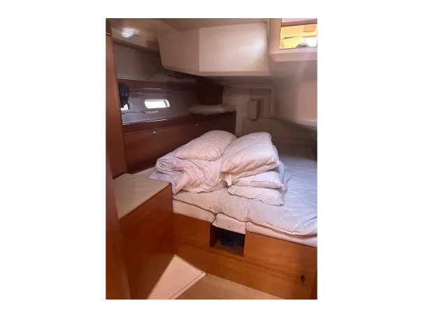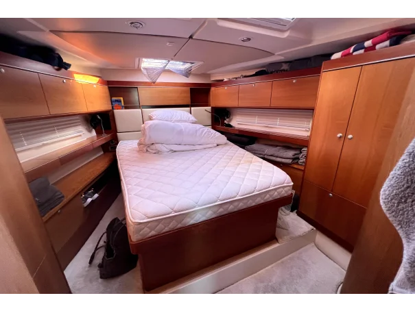 Distribución de tres camarotes, con dos camarotes en popa y una amplia suite de armador en proa. Dispone de dos baños completos, ambos con ducha y lavabo.