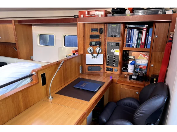 Impulsado por un motor diésel Volvo Penta D3-110 con transmisión por eje directo y hélice plegable de doble pala.La embarcación está equipada con propulsor de proa y de popa (la unidad de popa pendiente de sustitución de una pieza). Dispone además de generador Panda 8000i, inversor Victron y cargador de baterías.El aparejo, firmado por Z-Spars/Selden, cuenta con vela mayor con rizos tradicionales (slab reefing) y un inventario completo de velas, que incluye vela mayor, génova, Code 0, spinnaker asimétrico y trinqueta de tormenta.