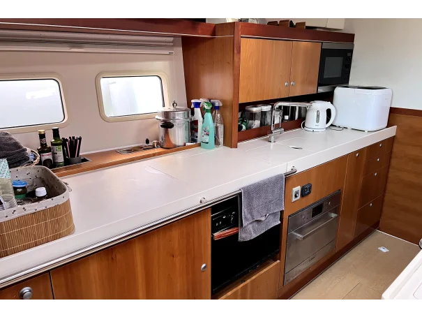 The yachts come equipped with a Generator Panda 8000i, a Victron 2020 inverter, four batteries, an engine alternator, a 240V battery charger, and two power cables, including a water maker. Last antifouling and out of the water May 2024. Previous engine service March 2025.